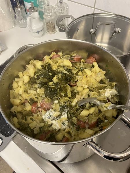 Die Helfer und die 14 Gäste haben gemeinsam Wirsingeintopf zubereitet, der sehr gelobt wurde.